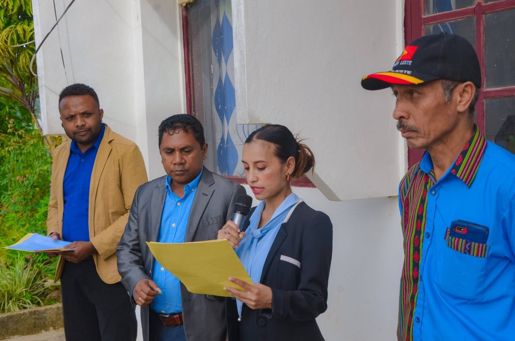 Entertantu ekipa hasa’e Bandeira responsável husi DNSPP, Komandante Parada husi Komando PNTL Aileu no responsável ba koru husi Servisu Munisipál Edukasaun Aileu.