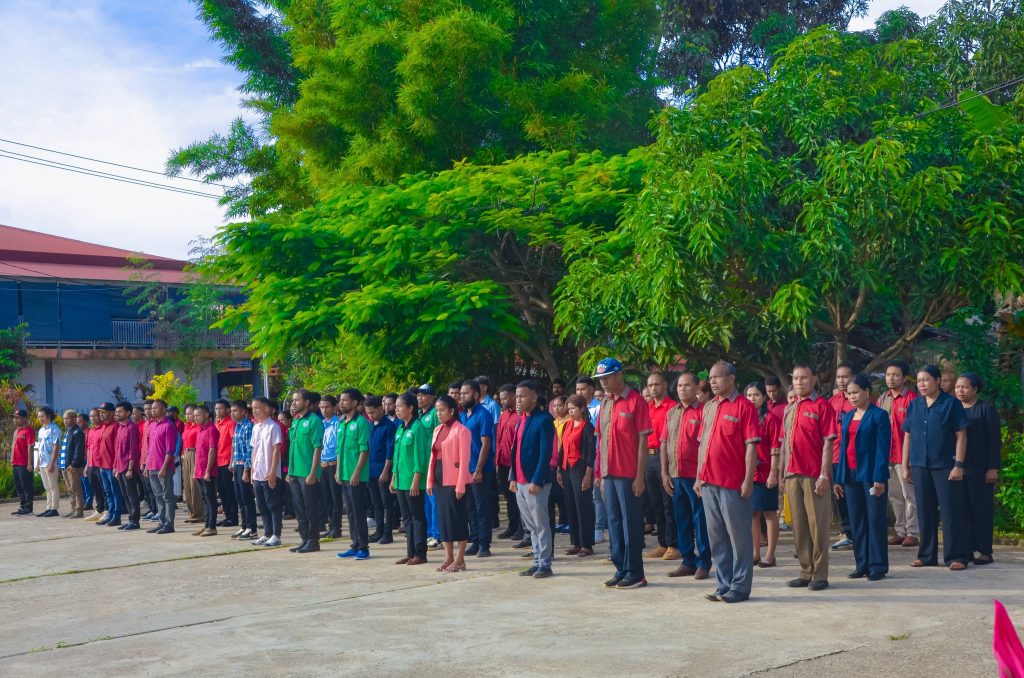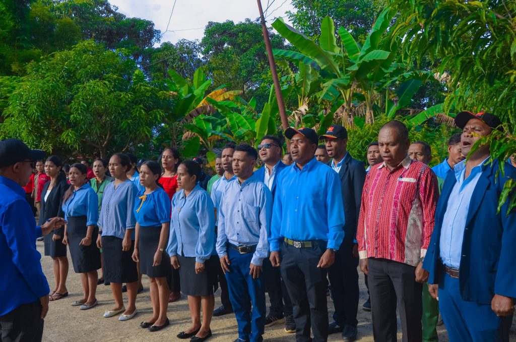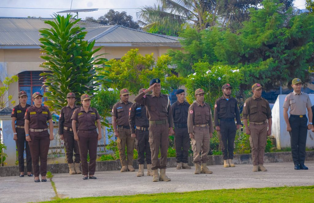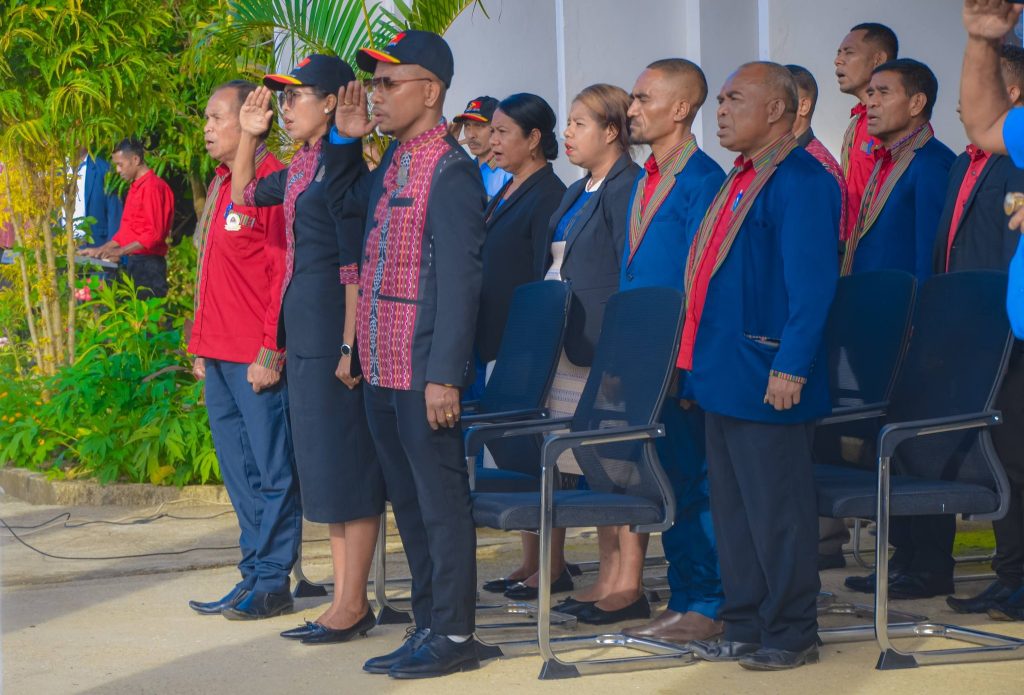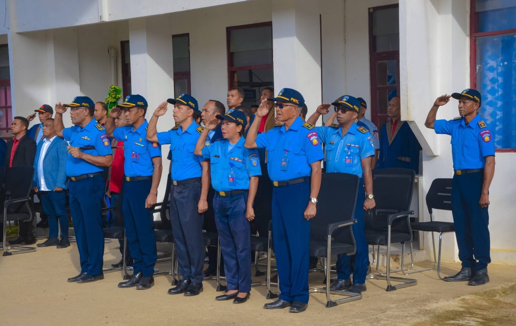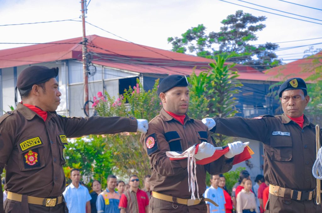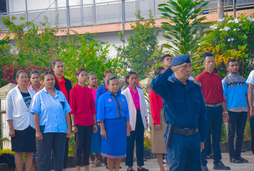 Aileu, 05 Janeiru 2026. PAM-Aileu “𝐄𝐱𝐞𝐥é𝐧𝐬𝐢𝐚 𝐉𝐨ã𝐨 𝐁𝐨𝐬𝐜𝐨 𝐝𝐨𝐬 𝐒𝐚𝐧𝐭𝐨𝐬”, segunda ohin iha resintu AMA, sai hanesan inspetór ba seremónia hasa’e Bandeira RDTL ba semana dahuluk fulan Janeiru nian, ne’ebé akompaña husi Sekretáriu/a Munisipál, Komandante PNTL Munisípiu Aileu ho Komitiva , Administrador husi Postu, Diretor Servisu Munisipál no Delegasaun Territoriál sira hotu.