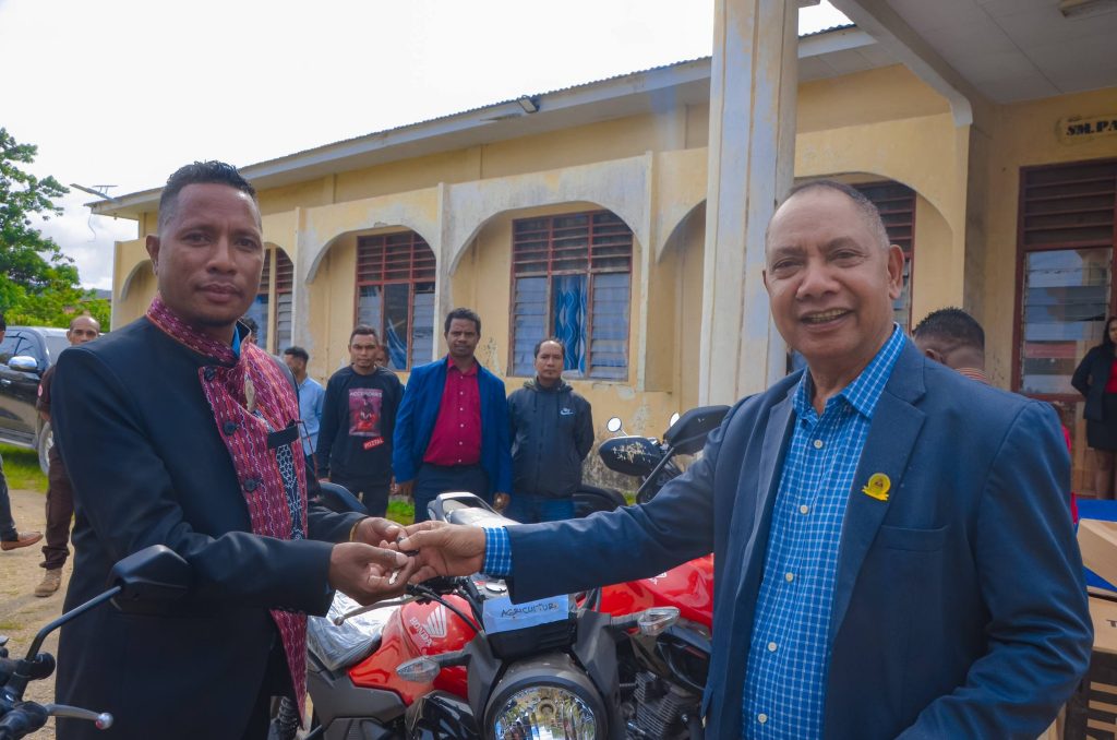 Hafoin hasa’e Bandeira, PAM simbolikamente entrega mós motorizada unidade 4 ho marka Verza ba Administrador Postu Administrativu 4 iha Munisípiu Aileu.